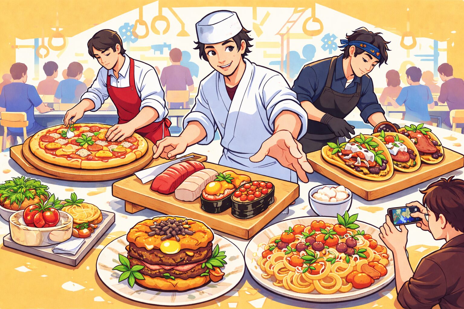 | Spread | Sushi → pizza, pasta, tacos, burgers |